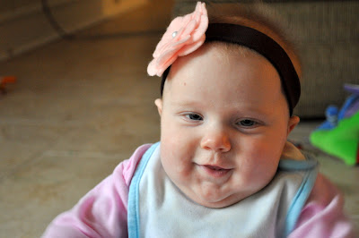 Has it really been 4 months already? Time really flies. She is just darling! And I love that headband.