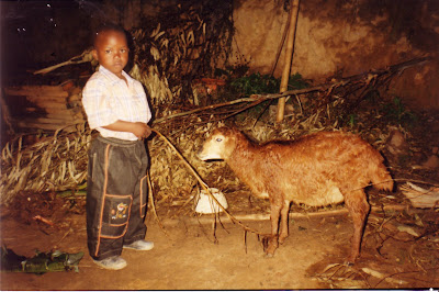 I teared up when I saw him and learned of all the things he was able to buy with the money we sent him for his birthday, back in July. This includes the clothes he’s wearing, the sheep he’s next to, socks and food.