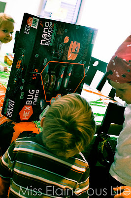 The party was centered around the HEXBUG nano bugs – little mirco robotic bugs that my boys are now crazy for. When I was selected to host a party through Mom Select, I was so excited since the one bug I brought back from BlogHer ’11 was a total hit at our house! I let the boys know we were having a Halloween-themed party at our house but I didn’t show them the goodies until the night before. And then the afternoon of the party they were totally pumped!
