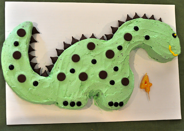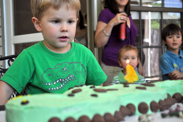 Happy 4th Birthday! Great job on the party – the cake looks fantastic. That shirt is adorable. My oldest is a huge fan of dinos and the wheels are turning in my head how I could incorporate his name like that on a shirt.