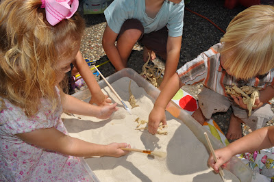 It was really hot and humid here on Friday. But then, on Saturday morning as Tim and I chatted up the folks setting up the party bounce house, I realized how nice it was out. The Outdoor Party Gods (meaning the big man Himself) smiled down on us and granted us THE. PERFECT. weather for a mid-May shin-dig. Or dino-dig. Whichever.