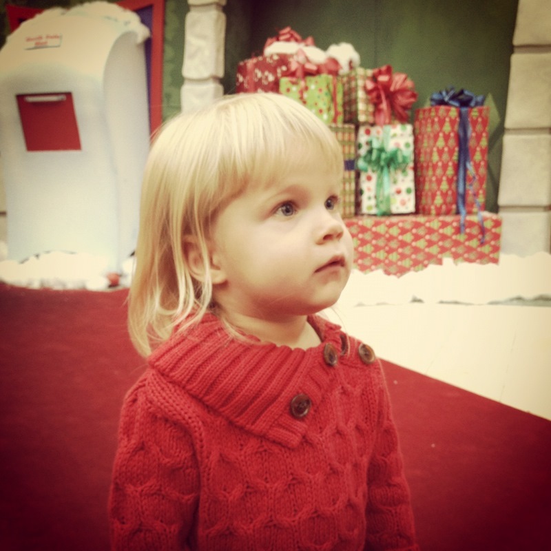 Last week we were at the mall and I asked E if she wanted to go see Santa…. she declined….. then rolled her eyes. Enjoy it while you can, even if only one will sit on his lap.