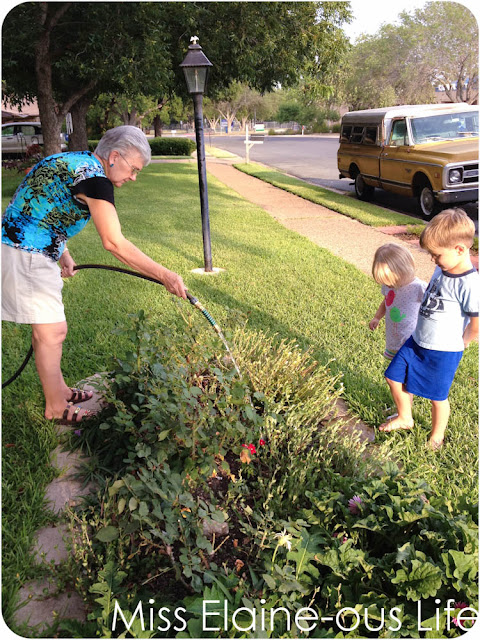I wasn’t great about getting photos of my kids with my parents during this last trip home, except if you count these few I took with my phone. And well, I guess they do count because both of my parents are in what I would consider their “natural habitat – my Dad sitting on the glider on his deck and my Mom watering her beloved flowers.