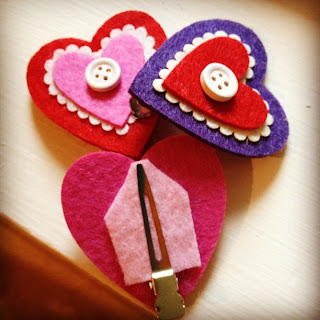 I found these felt hearts in a six-pack at World Market, with mini clothes pins attached. I pulled those babies off and got me some super craft glue and attached a piece of felt and clippies instead. Cute, yes? I plan to give some extras to friends.