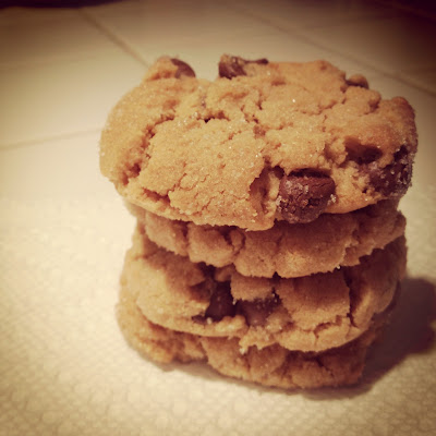 So, the other night I was like, “Elaine, you should totally bake some cookies but not the same chocolate chip ones you always make. Peanut butter ones sound good but you could still add chocolate chips because you love chocolate. Ooh Ooh!! I think you have milk chocolate chips in the pantry, those would be great in them! Okay, go check Pinterest and see if you can find a good recipe…. Oh yeah, those look good, and easy and you have all the ingredients except for PB chips but you don’t need those, just more chocolate. Okay, go get the butter out of the fridge so it can soften…”