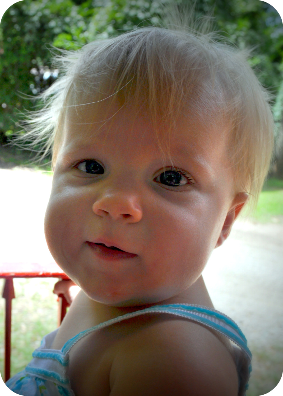 Oh, my. Chubby legs, beautiful blue eyes. THanks for sharing her!