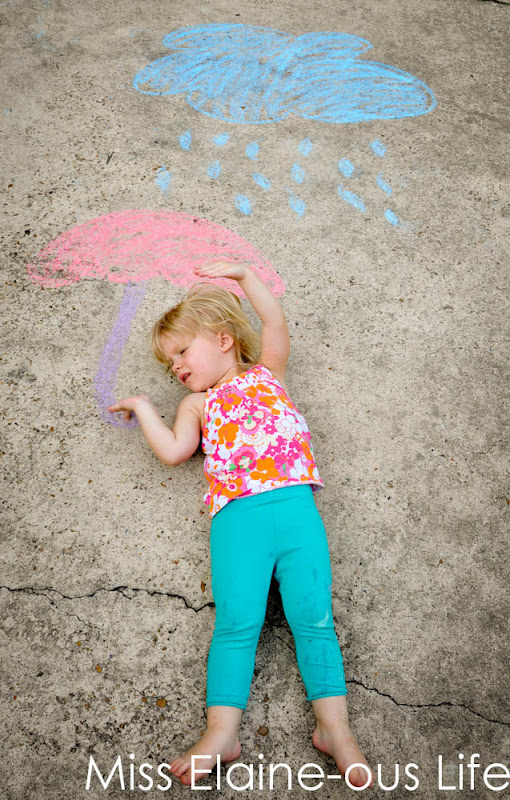 We were outside the other day, blowing bubbles and making chalk drawings (see previous post) and I had the idea to try to do one of THOSE pics. You know like the ones where someone draws a scene with the chalk and then puts a kid in it? Yeah, that.