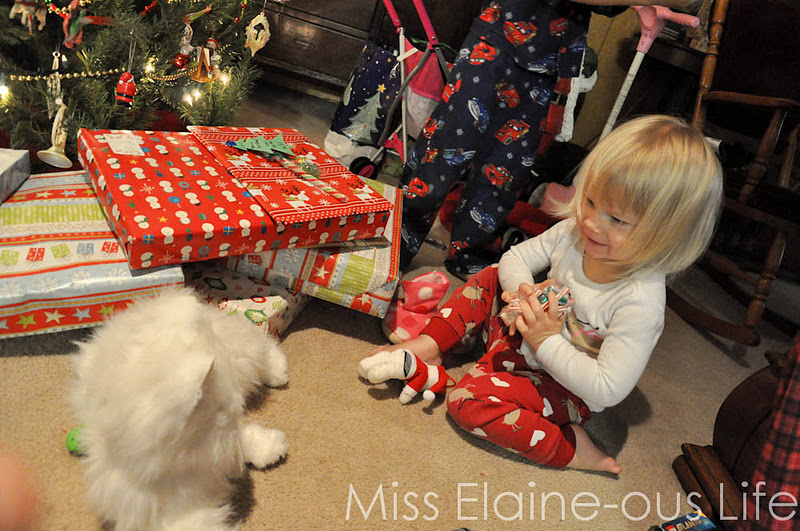 Our Mass experience on Christmas Eve was fairly awful too, and it had nothing to do with presents. I didn’t make Lily nap, thinking she would fall asleep at Mass. Mass was at 4:00, but we had to get there at 3:00 to have seats. 8 of us crammed onto 4ish chairs. T ended up in the van with Benjamin and Lily just made me crazy. I was not spreading Christmas cheer, for sure.