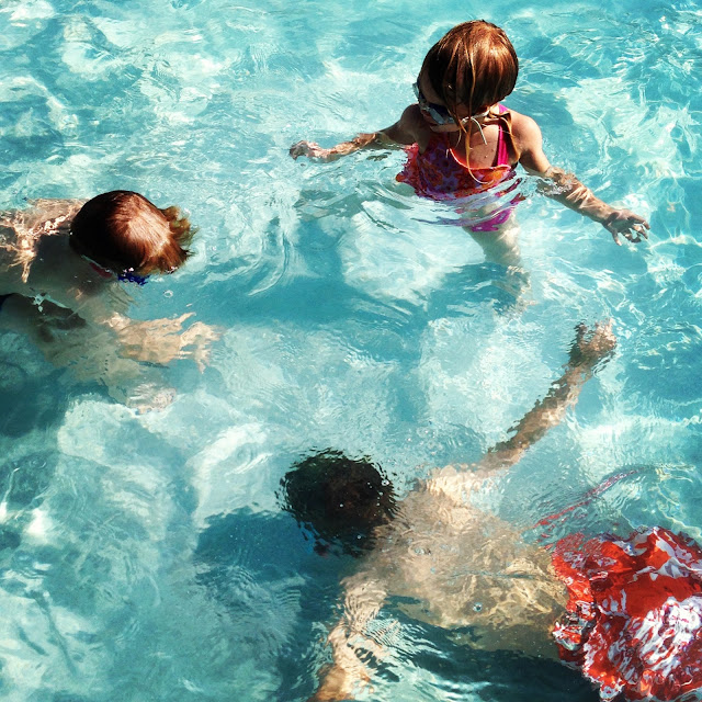 There are kids everywhere diving under and hollering, “mom!” and wearing goggles of all colors.