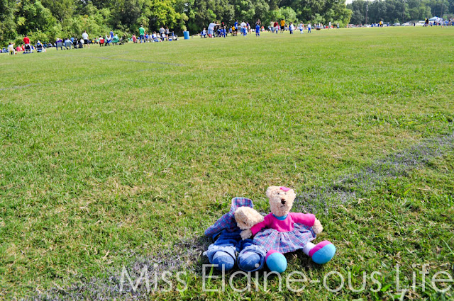 Unfortunately the boys’ games were basically at the same time. G’s started at 10:15 ad B’s at 10:30. I took G to his field and let the coach’s wife know that I had to take B over to another field for his game. I trekked over there (it was a bit of a hike) with K in tow, as well as an “Elmo” backpack with “Sammy” and “Tammy” (I’ll explain that too…).