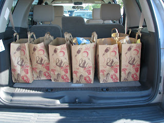 After we were thoroughly spooked Jennifer and I met back up with the other girls and headed out to lunch, my family’s old homestead and… Trader Joe’s!! Yes people, I finally got to shop at T.J.s! I am totally bummed (that’s Cali talk for disappointed) that I didn’t get a picture of me inside the chocolate and cookie and “I-wish-I-could-take-one-of-everything-in-this-aisle-home” aisle, but oh well. Here are our bags (and two of them are mine and full!)