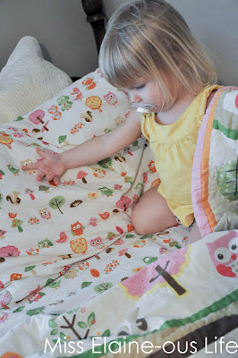 Miss K looks so cute in her big girl bed.