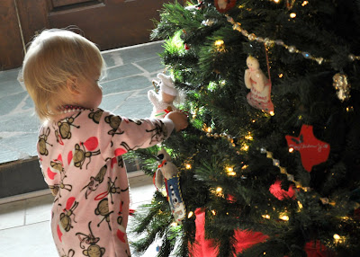 …and since cute little ones like to “play” around and with the ornaments (don’t worry, the bottom of the tree is decorated sparsely and with child-friendly ornaments only).