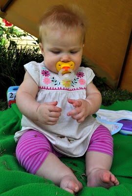 Also, did you know that smocked dresses are VERY popular here? Yeah, I didn’t either until I moved here. Maybe it’s a Southern thing?? I think they are cute but never thought that much about them before moving here and seeing a ton of them in a local baby boutique. Yes, very popular. Our neighbor has given us a few hand-me-downs from her Granddaughter and the other day she gave me a darling smocked jumper with light green eyelette fabric and cute pink embroidered flowers. Baby K wore it to church yesterday and it’s SO sweet on her. More smocking may be in our future (her Christening dress also had it…).