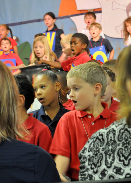 Anyway, he was recognized for having Perfect Attendance (him and only 4 other children in the entire 1st grade!) and stood in the front row singing all the songs they prepared.
