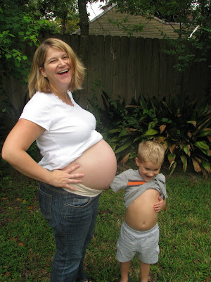 I love that last picture with both tummies showing. Adorable. You looked happy for each pregnancy.