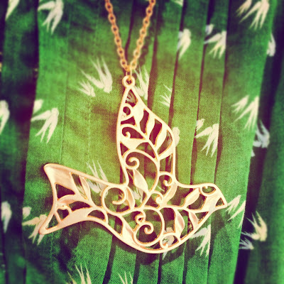I just bought it the other day at Francesca’s. Do you have this store too? Oh I love it. They have great jewelry – oh and cute clothes too. It’s kinda like a boutique. The green blouse is from Anthropologie (other favorite store) and it has little white birds on it so I thought these go great together.