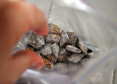 OH! And whose hand is that reaching into the SWEET and yummy “puppy chow”? I’ll never tell…