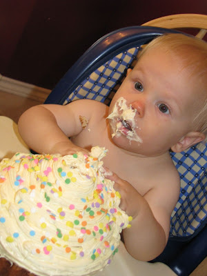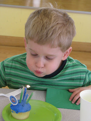 Fun party, Elaine! I love that picture of Little G with the cake – such BIG eyes. Lol. So cute. Nice family shot, too. And of course the B man with his cupcake is adorable, too.