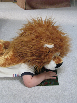 And I love the one where he’s reading with his lion head on. Cute!
