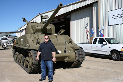 Tim in front of a fully operational tank