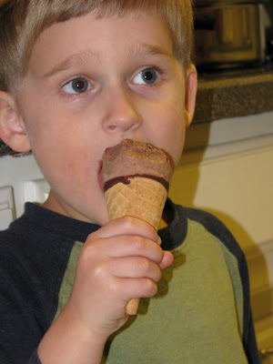 Oh, kids and ice cream. So what age is it when they finally eat more than they wear?