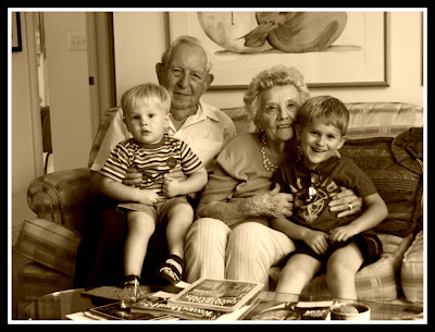 And the last shot was taken while we visited with “G.Gs” (Tim’s grandparents) before we left Texas. Wonderful people and a wonderful pic of my boys with their great-granparents.