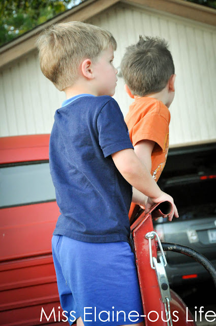 And can I just say, I LOVE that red truck. So awesome. 🙂