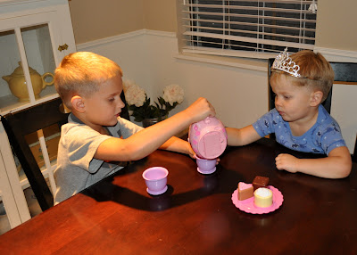 Awesome. He wears that tiara with confidence. We have the same tea set. Each piece is in a different part of the house. 😉