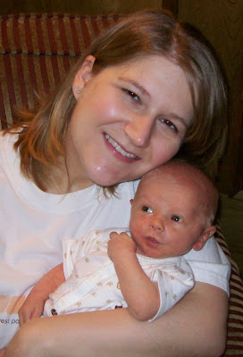 I know, I look tired, but I was oh so happy to have my little boy in my arms. I love his little pursed lips and I can remember his sweet baby smell. It makes me want another one. And hey! I’m in luck! : )