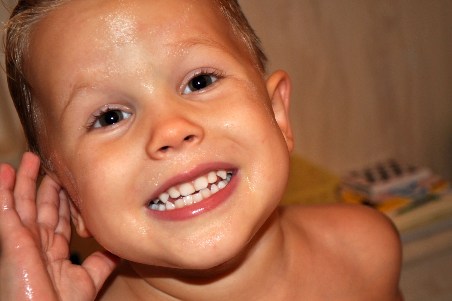 Those are fantastic pictures of their smiling faces. I love the clean, wet faces. = )