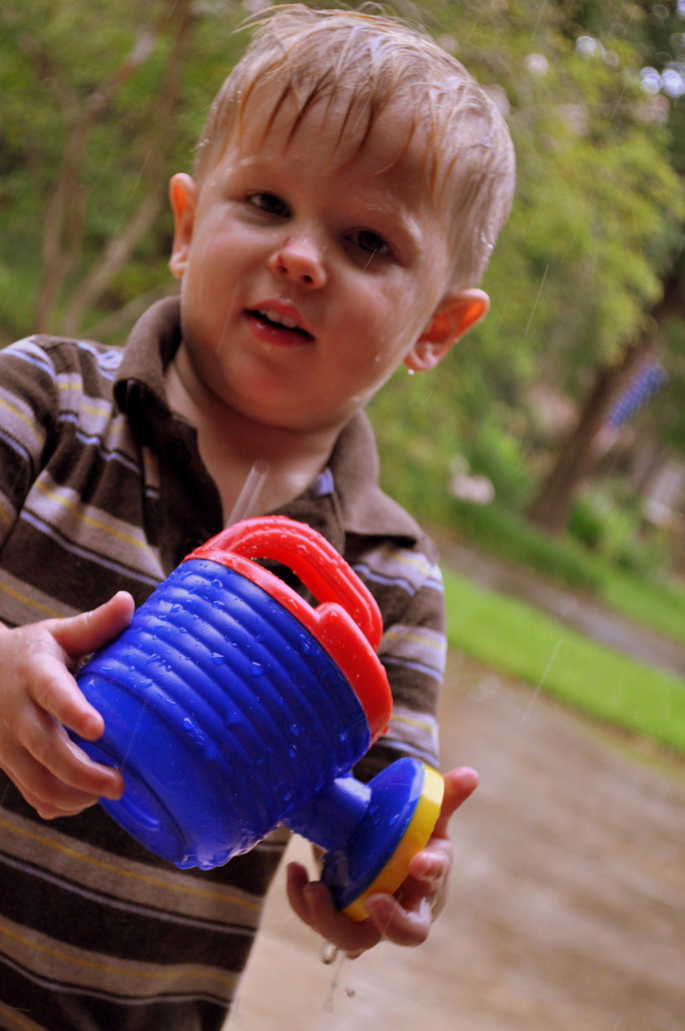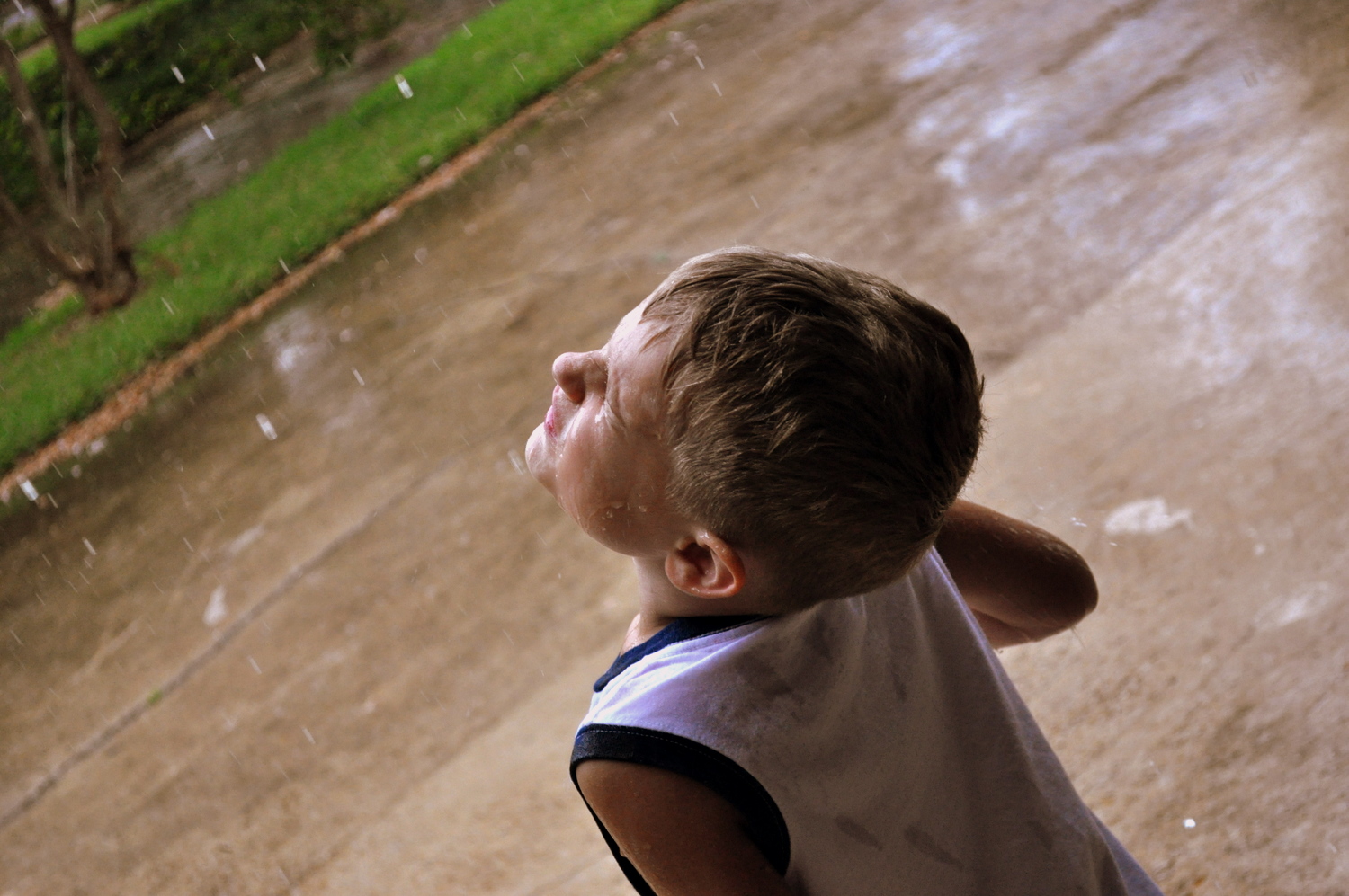 I suggested to the boys that they go out and play in the rain.